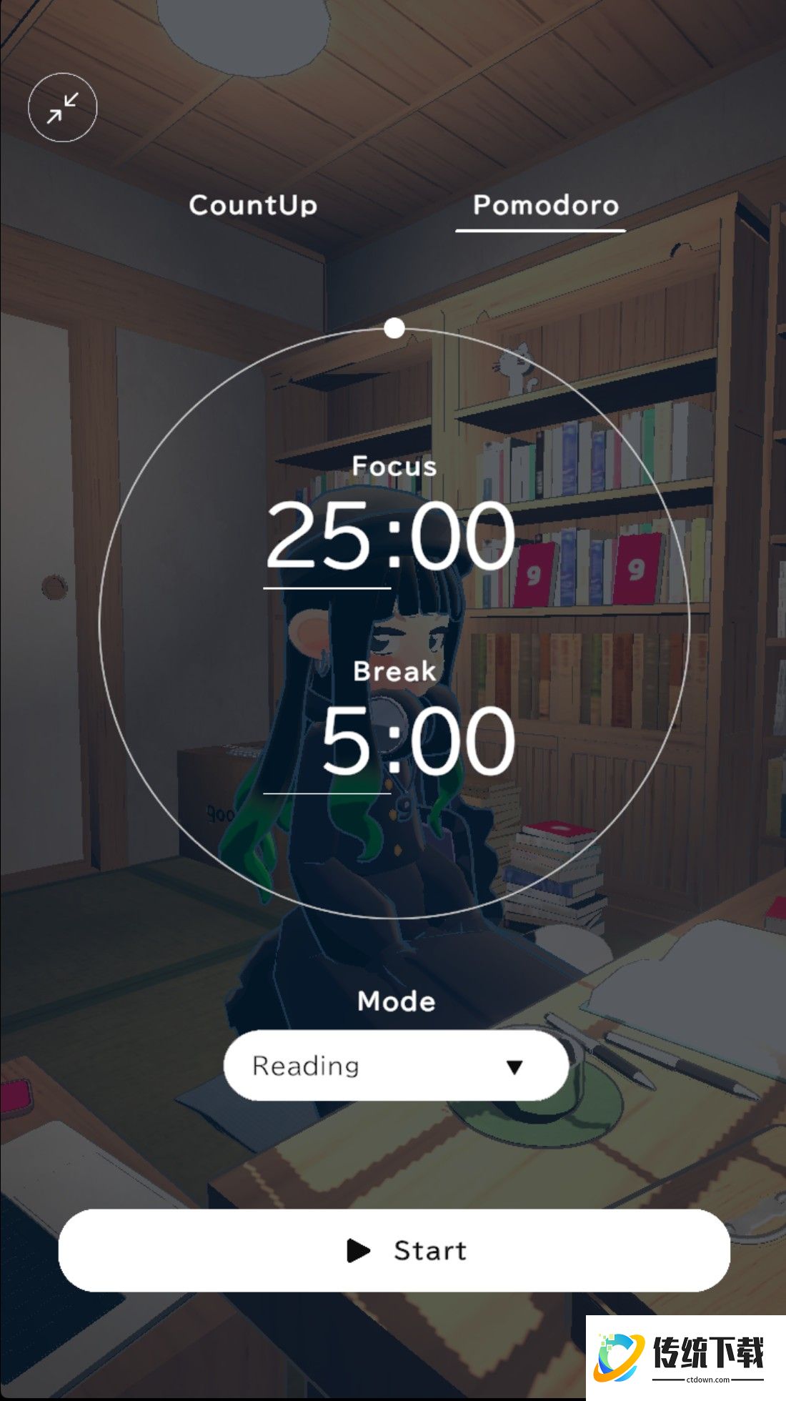 8、屏幕右下角的番茄计时器帮助你高效管理时间,25分钟的专注后还有5分钟的放松时间。