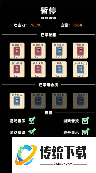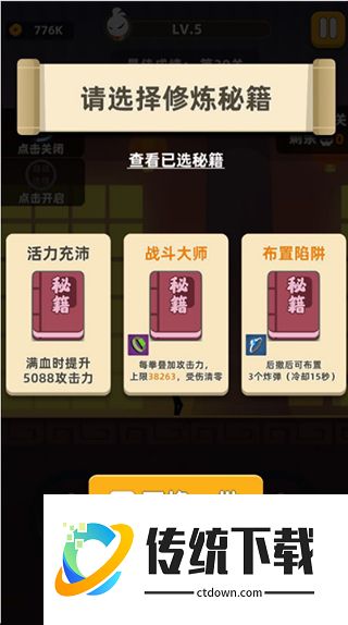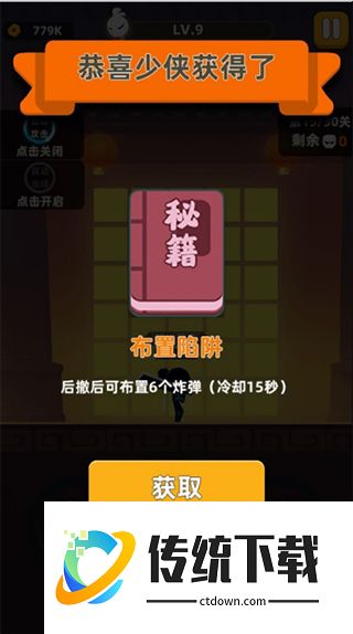 5、习得之后就可以在其他的通关中进行使用了,但是组合技需要激活,也就是再一次通关中,累计习得的秘籍有吸血,二段伤害,布置陷阱,就可以激活这一个组合技了
