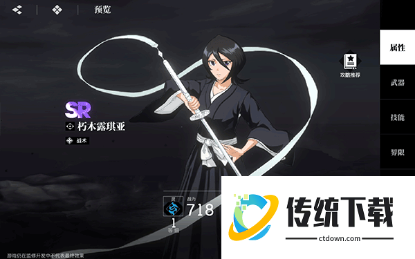 朽木露琪亚(SR):冰系控制核心,大招「无垠之境」冻结敌人并触发增伤,被动「冰结」对目标完成限制,适合高难度副本。