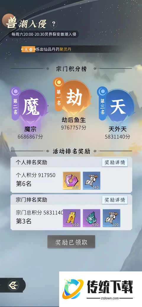 1、玩家需要先加入宗门,活动开始前玩家需要先进行报名,每周六20:00-20:30活动开启。