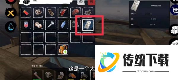 3、你所拥有的只是一个带绳子和木筏的钩子。你所要做的就是在这里生存。