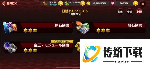 日替有减半福利,但是轮换制的,他们分别是原石探索(角色及武器的突破材料和武器的狗粮,减半时间为周一、五、日);辉石探索(支援的突破材料及狗粮,减半时间为周二、五、日);宝玉和芯片探索(勾玉突破,重置及设施升级材料,减半时间为周三、六、日);金块探索(金币的主要来源地,减半时间周四、六、日)