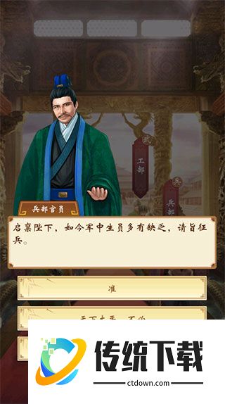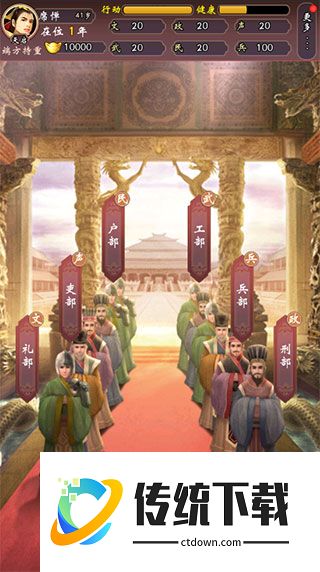 3、这款游戏主要朝臣分为六部,吏部、户部、工部、兵部、礼部、刑部;