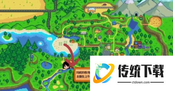2、然后找到玛妮和莉亚家,下面的河流中可以钓到大鲶鱼。