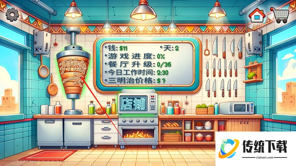 玩家需从备料开始,手动切土豆条、烤制肉片、卷饼装袋,体验完整的沙威玛制作过程。