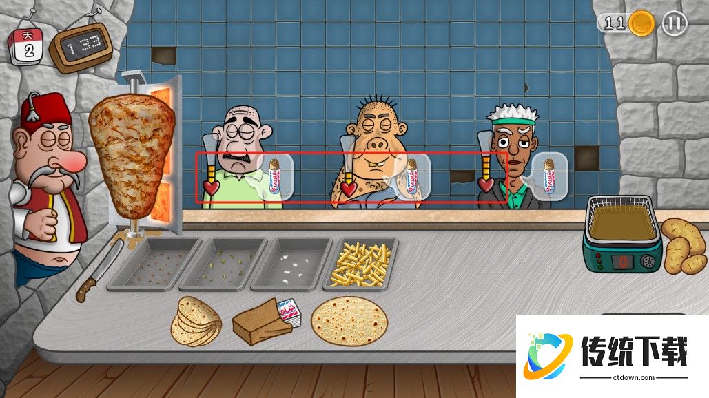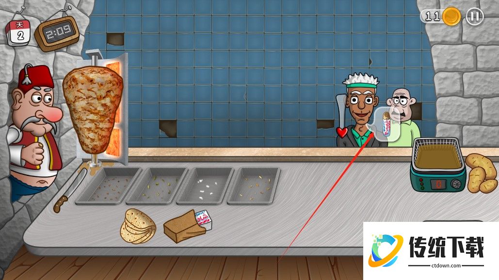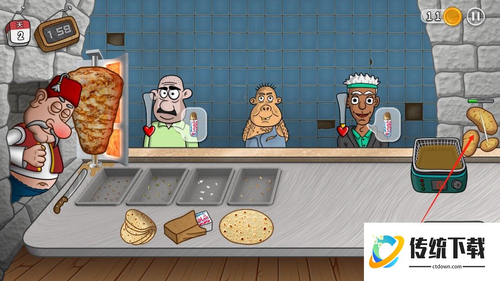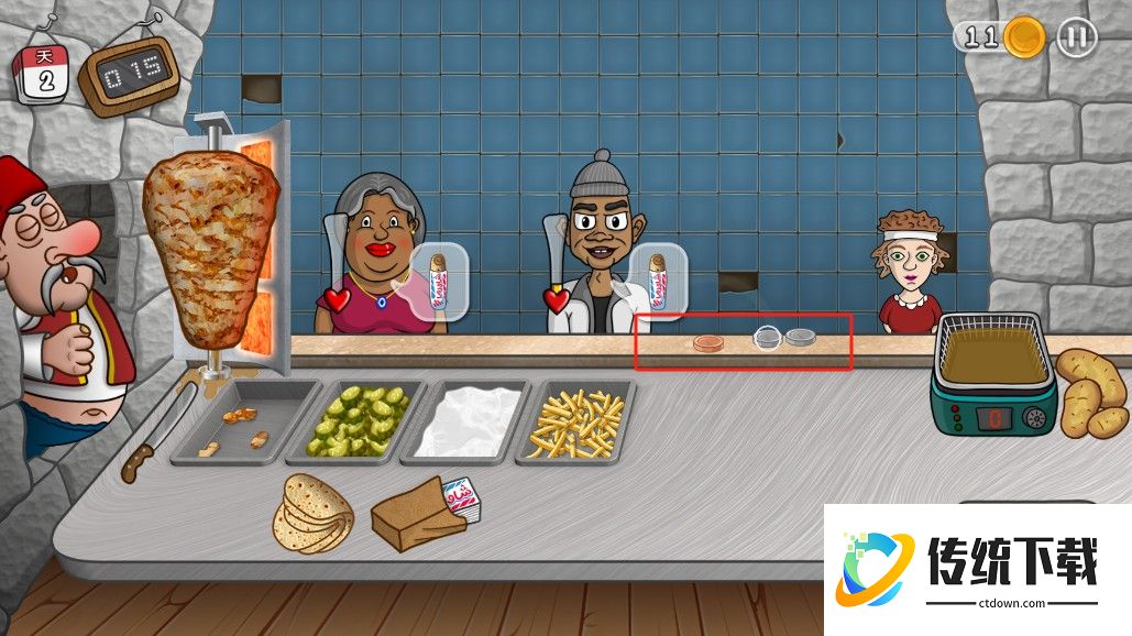 2、玩家需要制作沙威玛,提供给顾客;