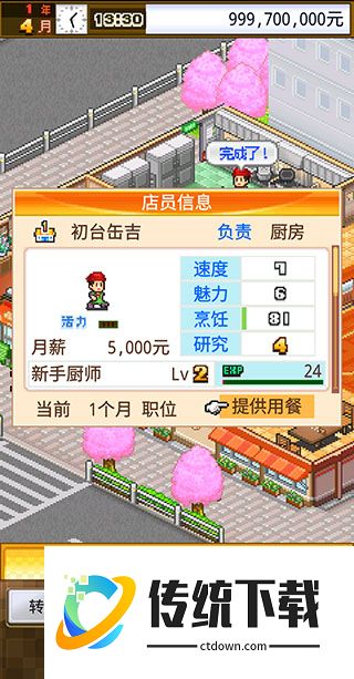 2、玩家需要雇佣员工,并合理安排他们的工作,提高他们的技能和能力,以提供更好的服务和料理质量。