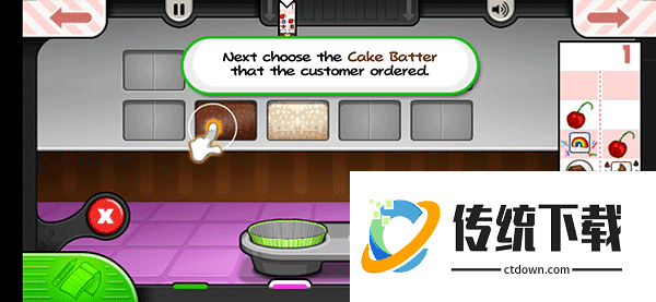 1、进入老爹蛋糕店游戏后,首先接收客户的订单,然后切换到面糊点开始打开纸杯蛋糕