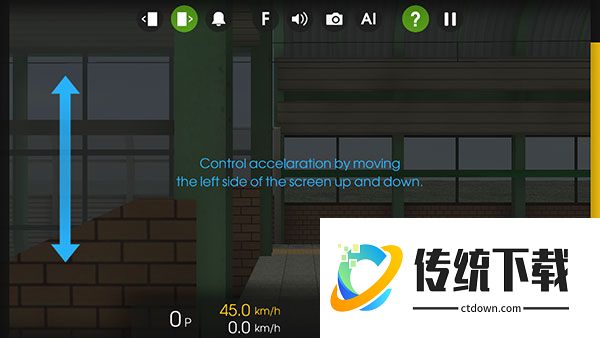 -玩家将右边的黄色减速条拉为0,将左边加速条拉为1~5档都可以,列车就会开动啦,到达目的地之后需要停在标准线之内才能打开车门接送乘客,注意不要错过站台了哟!