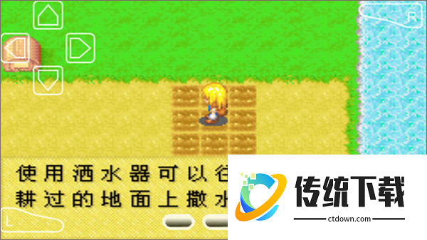 5、使用洒水器为种子浇水,怎样将洒水器灌满水呢?装备好洒水器,然后来到有水的地方按B键就可以了。