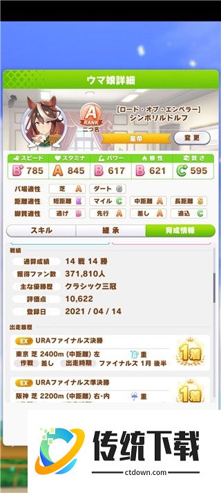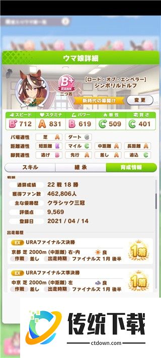 首先我放了两种情况的最终成果,第一匹是运气还行有彩圈,养成全胜优质因子马,运气绝佳的话可以入JJC。第二匹是运气不行,生病还少彩圈,养成高胜率比赛资源马。