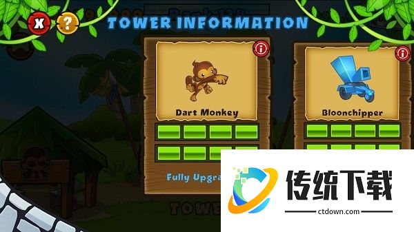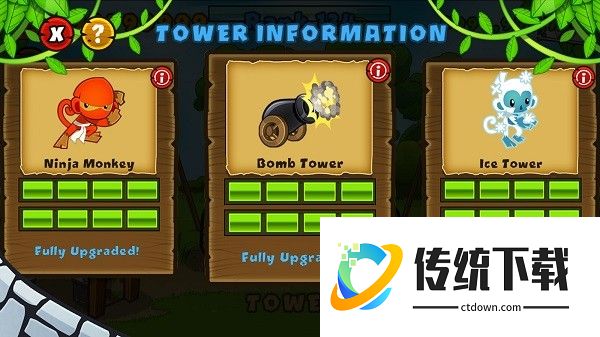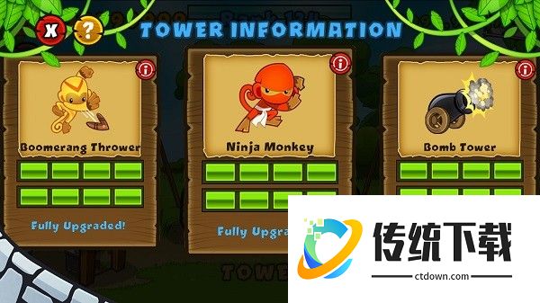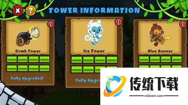 作上,在气球塔防5中,玩家只需将猴子或其他道具放到地图中的适当位置即可。不同类型的猴子攻击范围、攻击速度各有不同,通关的核心在于确定最佳放置点,如何快速、高效,消灭全部气球非常考验玩家的布局策略。游戏内提供了六种难度选项,既方便新手玩家快速适应,也满足老玩家的挑战欲望,通过升级路线的选择,提升猴子们的整体作战实力,伴随着强大的气球Boss登场,可以使用道具,快速通关!