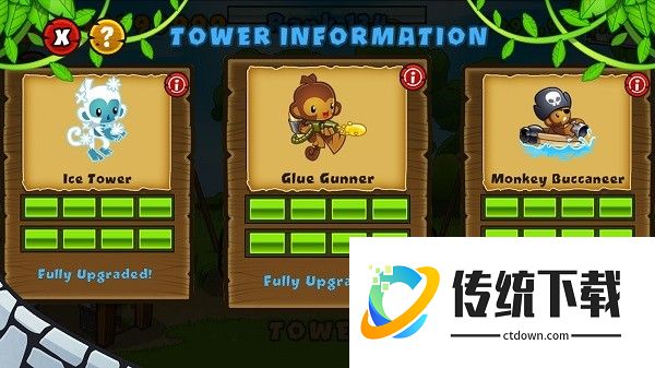 冰冻塔短时间内冰冻周围的气球,被冰冻的气球无法移动但也无法被飞镖攻击。