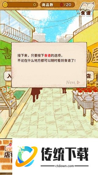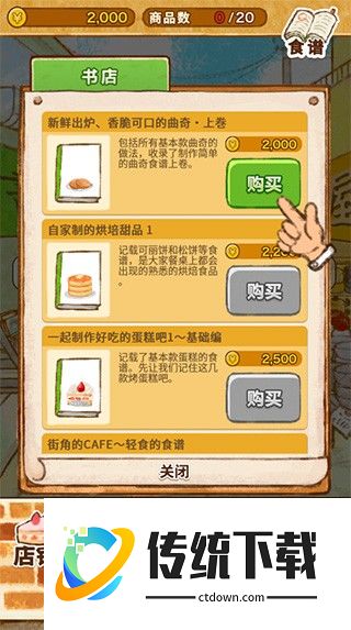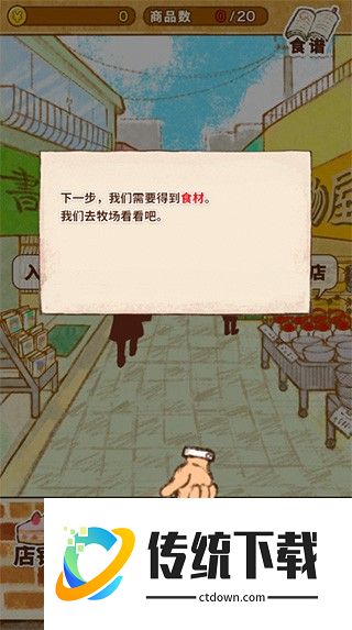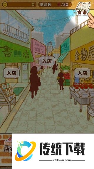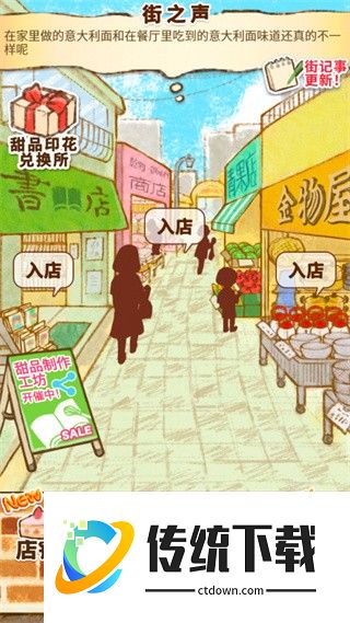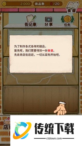 2、为了制作各式各样的甜品,首先呢,我们需要得到一份食谱。先去商店街逛逛,一切从采购开始吧;