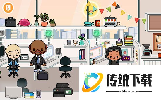 我们随便点击一个大楼即可进入其中,例如我们选择商业用楼,进来后发现里面是一间办公室,可以看到很多办公用品,还有很多工作的人员。