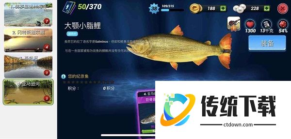 3、在这里您可以捕捉各种鱼类,如鲶鱼,贝斯,鲑鱼,鳟鱼,鲑鱼,梭子鱼...