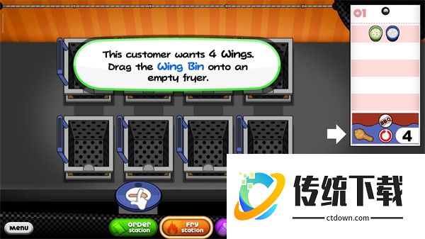 7、这位顾客需要4个鸡翅,我们需要将鸡翅拖入到油炸区域进行油炸;