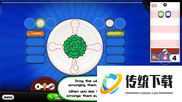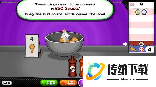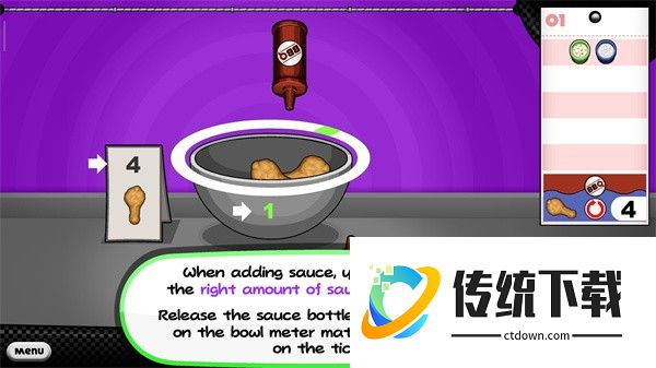 11、加酱汁的时候,你要用适量的酱汁蘸鸡翅上,当碗表上的数字与菜单上的数字相匹配时,释放酱汁瓶;