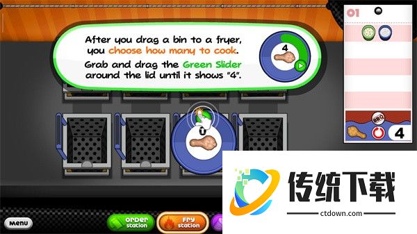 8、当你把盒子拖到炸锅里后,你可以选择煮多少,抓住并拖动盖子周围的绿色滑块,直到它显示“4”;