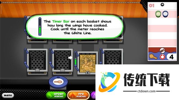 9、每个篮子上的计时器条显示了鸡翅烹饪的时间,这里我们需要将鸡翅煮到白线的位子;