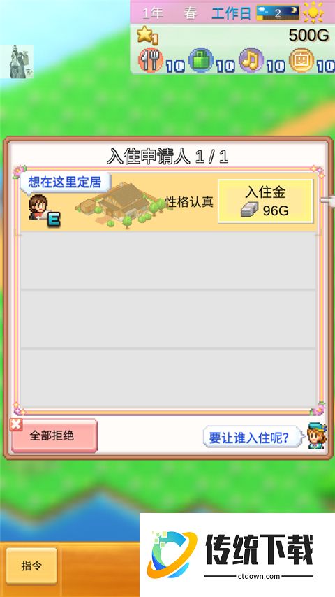 4、入住第一位居民,点击确定;
