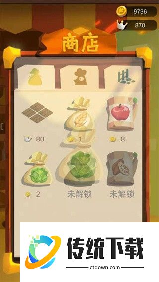 1、商店系统,售卖农产品解锁更多商品种植养殖。