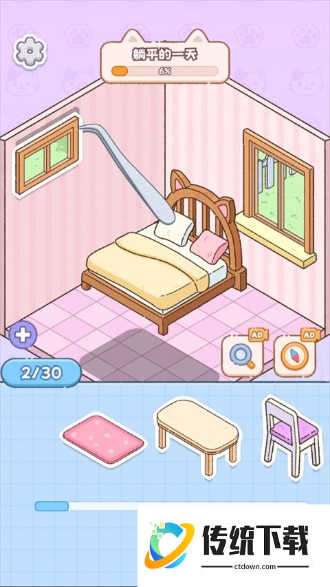 2、把乱糟糟的房间在你的手中变得窗明几净、井井有条,通关成功