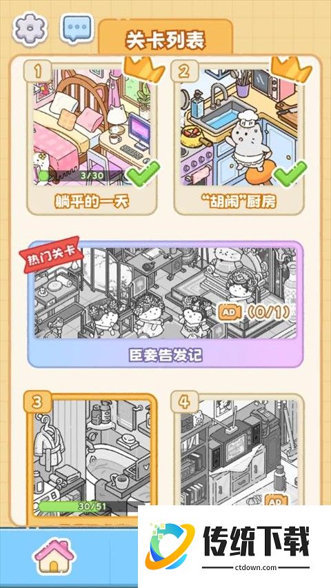 3、整理收纳之旅也绝不单调,丰富多样的关卡挑战等你挑战