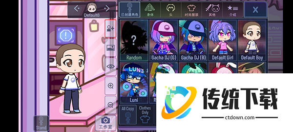 1、在工作室中可在屏幕上的任意位置添加角色。
