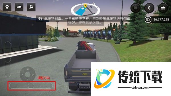 2、将车开到指定标记地点,左边调整方向,右边控制前进后退;