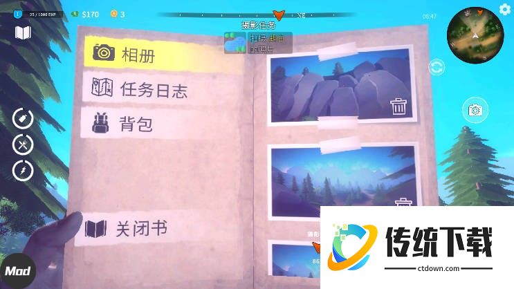 3、想要查看当前进度?点击左上角的图书图标,便能翻阅拍摄的照片,浏览地图,或整理背包物品。