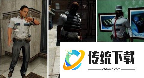 保安的官方版本,血量也是保持在每个难度40点,伤害与普通保安无异,区别就是所有的这种保安都持有洛洛克18C手枪,而且衣领上又一个特别装,比(low)的手电筒,潜入中分分钟暴露了他的位置。