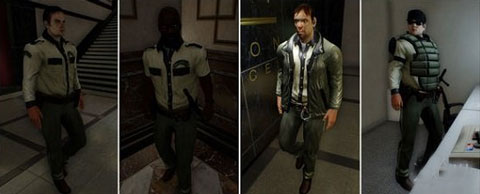 是我们大家“喜闻乐见”的警察,虽然血量少得可怜,身子板弱但不代表就不具有威胁性了。在各个难度下均有40点血量,伤害随难度依次增高,白叔叔和穿防弹衣(真短)的黑叔叔手持洛洛克18C手枪,射击模式为点射。不穿防弹衣的黑叔叔则持MP5冲锋枪,射击模式为连射。尽管射击模式不同,但都是拆护甲的好手。
