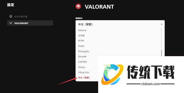 2、在语言设置中选择繁体中文,进入游戏,游戏内的文本语言就会默认设置成繁体中文。