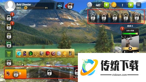 狩猎是每个猎人的生存之道。但你的游戏目标仅仅是射杀动物而已吗?当然不是,每天还有大量活动等待你的参与!你可得好好展现你的追踪和瞄准技巧,就像在顶级射击和狩猎大赛里一样!狩猎指定猎物,如鹿,或在指定地点狩猎,如非洲、美国和俄罗斯等等。达成目标,提升猎手等级!