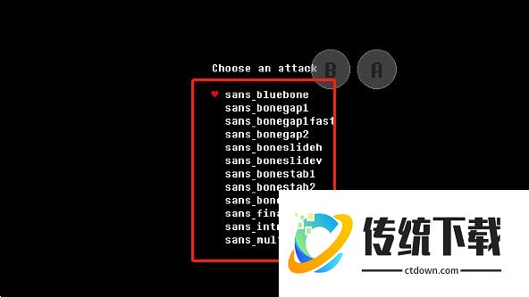 该模式为最为经典的剧情,游戏内玩家需要操控爱心躲避骨刺的攻击,但骨刺的移动速度较快,玩家触碰后会失去一部分的生命值