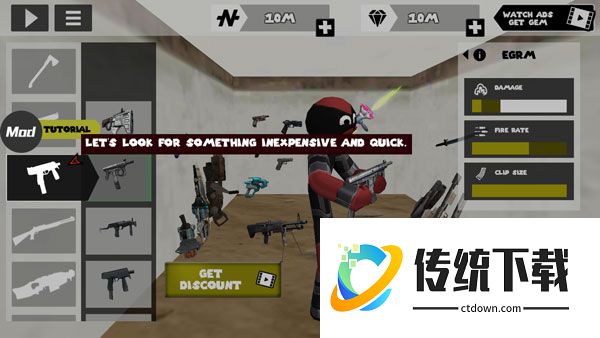 4、点击购物车图标可以进入商城购买武器,游戏已经破解,具有无限金币无限钻石;