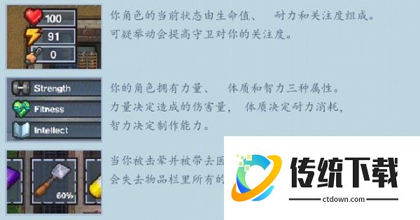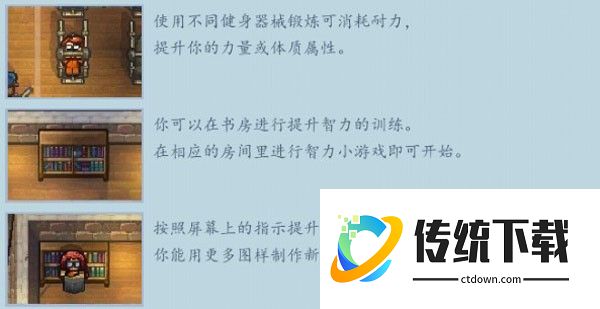3、血量为零后会躺倒床上,可以通过睡觉恢复体力和精力。通过吃饭和洗澡也可以很快恢复精力。