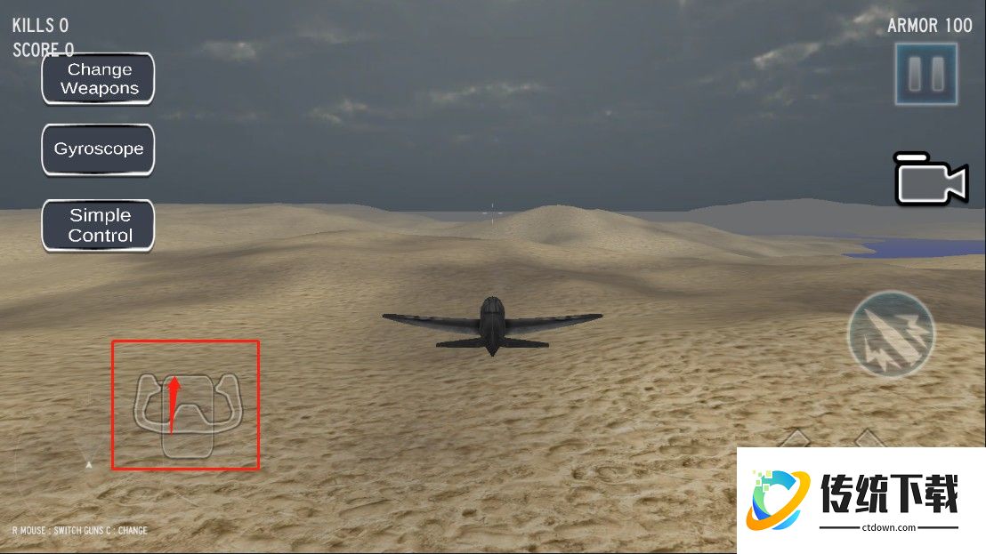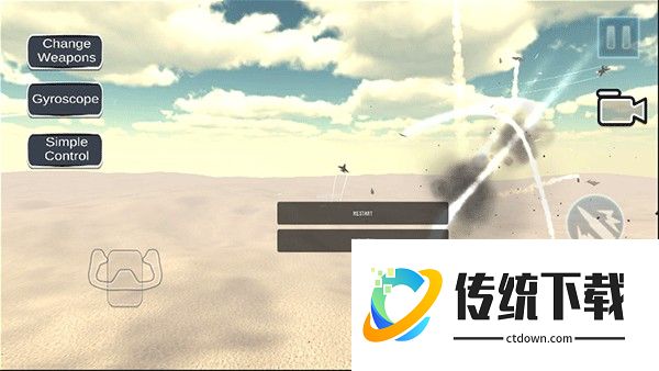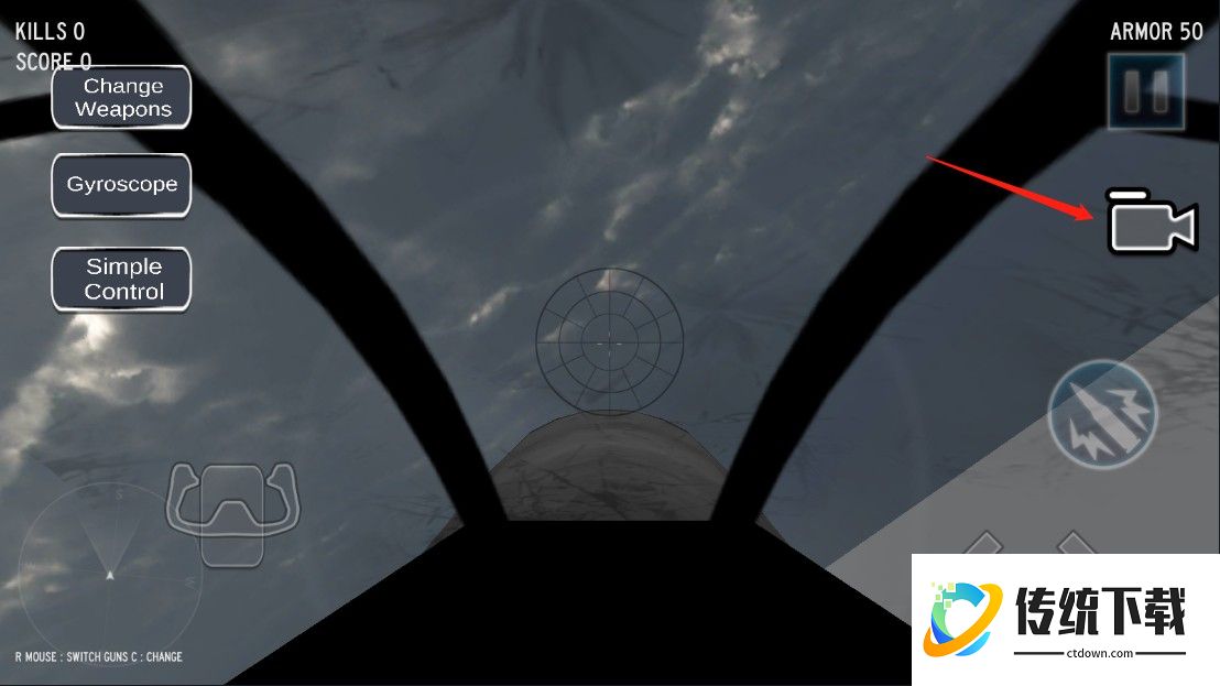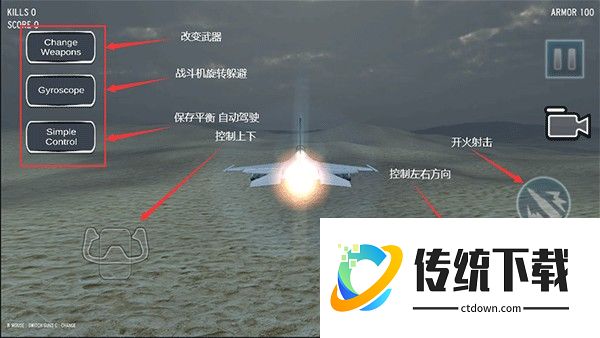 2、随意选择一种模式进入即可开始驾驶喷气式战斗机进行战斗,各个按钮的操作如下图所示;