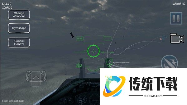 4、你仅仅需要驾驶着战斗机,消灭地图中的所有敌人,如果敌方战斗机进入你的攻击范围,会有绿色框提示,选择追踪导弹消灭它吧;