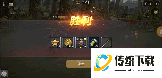 6、在刚才的界面中找到并点击“战斗”选项进入战斗,最终玩家获得胜利。