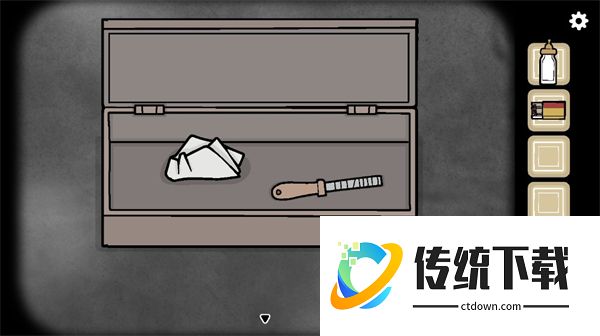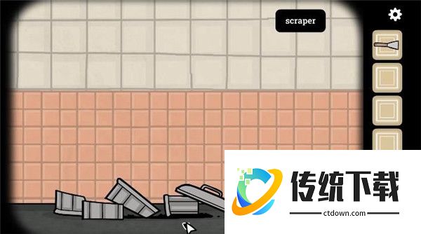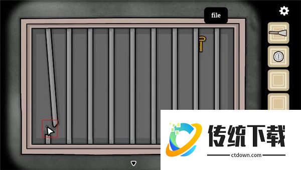 10、我们回到放箱子的地方,去看排水管,用锉刀将断裂的水管取下来,获得断裂的水管和钥匙。