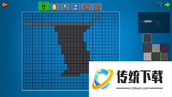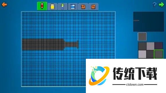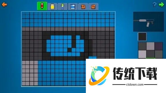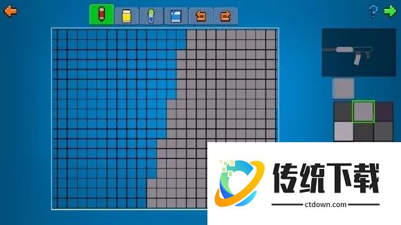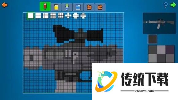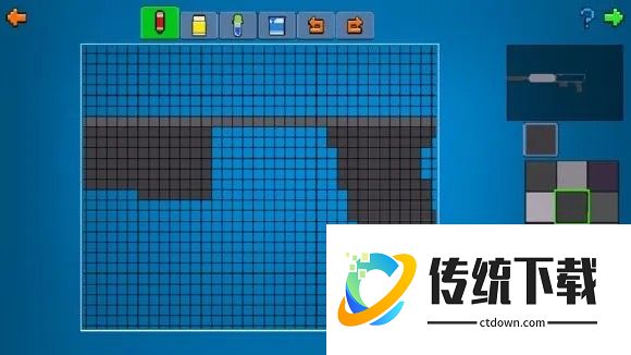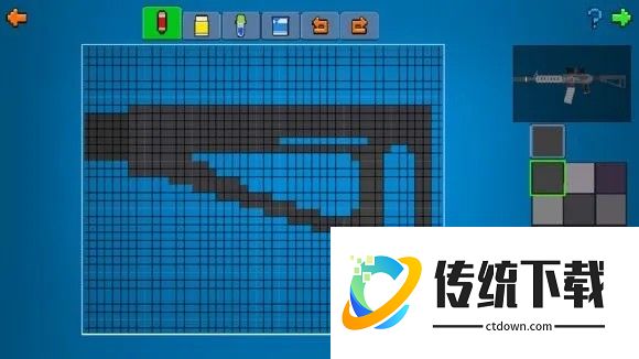 首先,既然是纯手动,要选择一个2D白模进入后,不要急着开始画,先规划好大概位置,防止空间不足导致缩水,或者枪械像素过低不美观细节先不用管,用纯色涂出大概样子如这个枪管