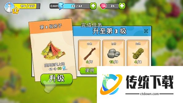 6、收集到一定量的物资后,可升级角色的房屋,开放更多有趣的游戏内容