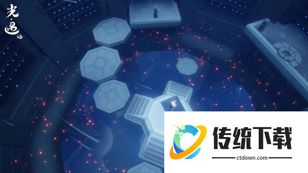 在底层,旅人们四周开始浮现出闪烁的星火。原本半埋在地上的石盘升起成为浮动台阶,墙上的瓦罐散发着点点荧光。初始层和底层都有着隐藏的大门,需要旅人们和小伙伴协作才能打开。