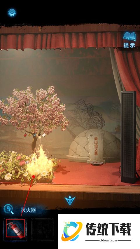 4、比如灭火器可以用来灭台上的火、蝴蝶可以放在墓碑上等等,玩家需要合理使用才能解开谜题。