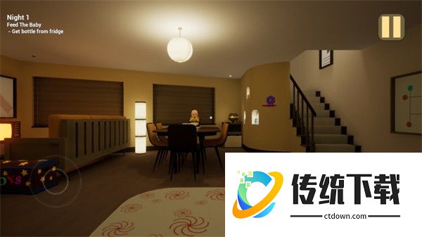 1、游戏的章节一共有3个,你需要每天按时来照看小宝宝,有时候会有着非常惊悚恐怖的事情发生,