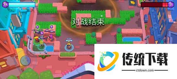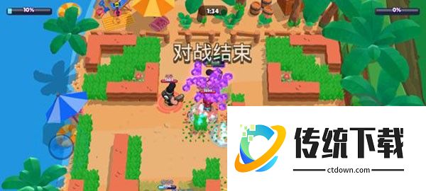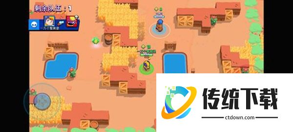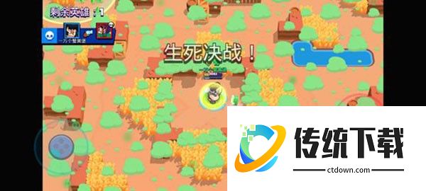荒野决斗是单人或双人战斗模式,每局10名玩家,最终赢家只有一位/一组。通过摧毁木箱或击杀敌人获取能量块,提升攻击力和生命值,毒雾会不断从外向内包围,英雄身处不断缩小的安全区域中,淘汰其他玩家,生存排名越高则奖励越丰富。