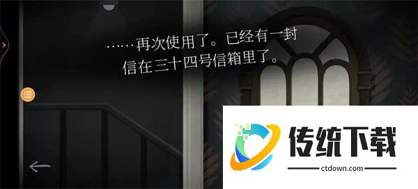 24、回到上方,依旧调频,这次玩家一和玩家二的位置互换,交换线索。玩家一:得到信息34号信箱有一封信。玩家二:得到信息,信箱可以使用。