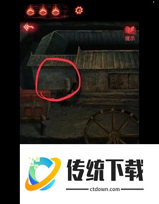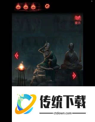 3、去第二个场景老头那里将【蜡烛】点燃(左侧火堆),放到右侧香炉中。(香炉里还差3个物品)